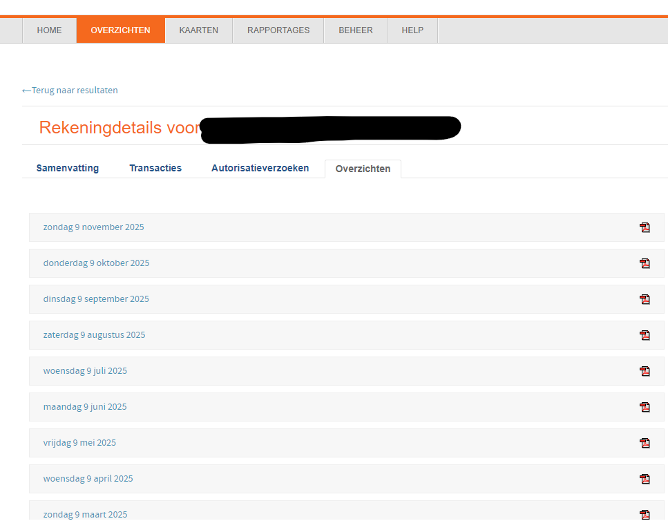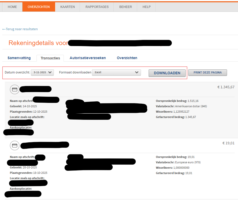 LET OP: Als je je creditcard vaak (minimaal 10 transacties per maand) gebruikt, willen we graag een Excel-bestand ontvangen. Als je je creditcard niet vaak gebruikt, ontvangen we graag een pdf-bestand.