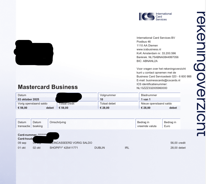 Van de ICS creditcard hebben we de maandelijkse rekeningoverzicht nodig. Er is een pdf-bestand beschikbaar.